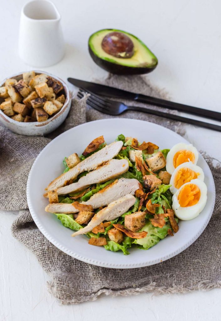A healthy caesar salad recipe with dairy free avocado caesar dressing, grain free croutons and coconut bacon! Dietary Notes: This recipe is gluten free, dairy free and nut free. For low FODMAP, egg free and soy free tips see recipe notes below. Healthy Caesar Salad...