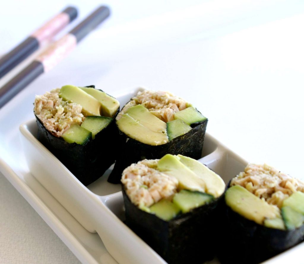 A quick and easy sushi-style lunch. Dietary Notes: This recipe is gluten free, dairy free, nut free, soy free and egg free. To make this recipe vegan, vegetarian and low FODMAP see recipe notes below. Nori Wraps A quick and easy sushi-style lunch. 95 g Canned Tuna...