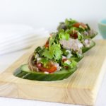 These mini thai lamb salad bites contain bursts of fresh thai flavours on bite-sized rounds of cucumber.